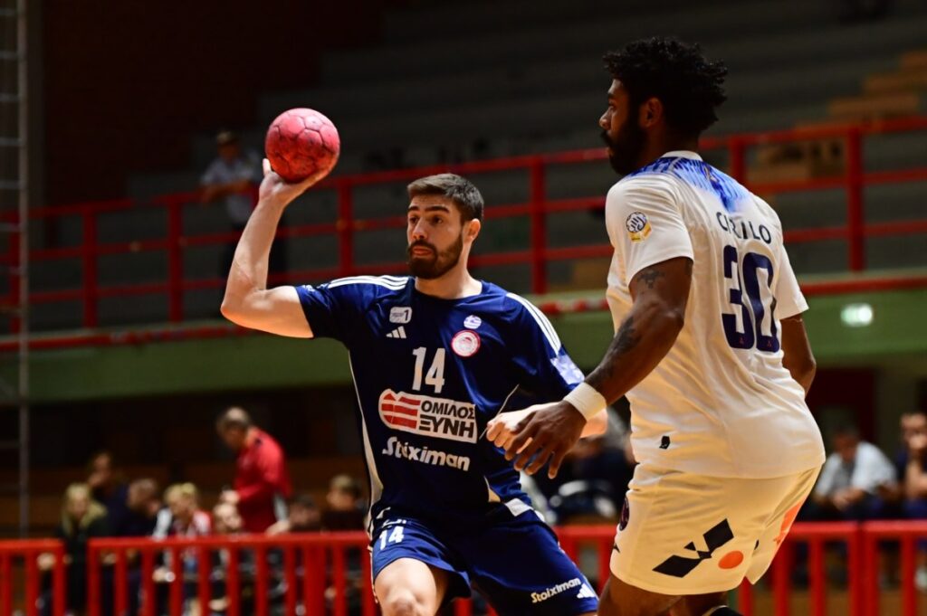 Ο Ολυμπιακός δεν έχασε σε κανένα σημείο του παιχνιδιού το προβάδισμα και επιβλήθηκε της Αλμπάτρο Σιρακούσα (τυπικά γηπεδούχος) στο κλειστό της Ηλιούπολης για το πρώτο ματς της φάσης των «64» του EHF European Cup.